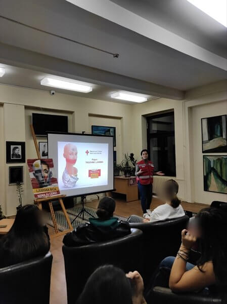 У Дому ученика средњих школа у Нишу 14. октобра одржана је информативна радионица на тему превенције трговине људима. Учесници су кроз стандардизовану презентацију упознати са појмом трговине људима, фазама, начинима врбовања, облицима експлоатације, механизмима контроле жртве и мерама опреза. Радионицу је реализовала Сара Станковић, тренер у Програму борбе против трговине људима, а стручни сарадник Црвеног крста Ниш Александра Савић је представила улогу Црвеног крста у борби против трговине људима.