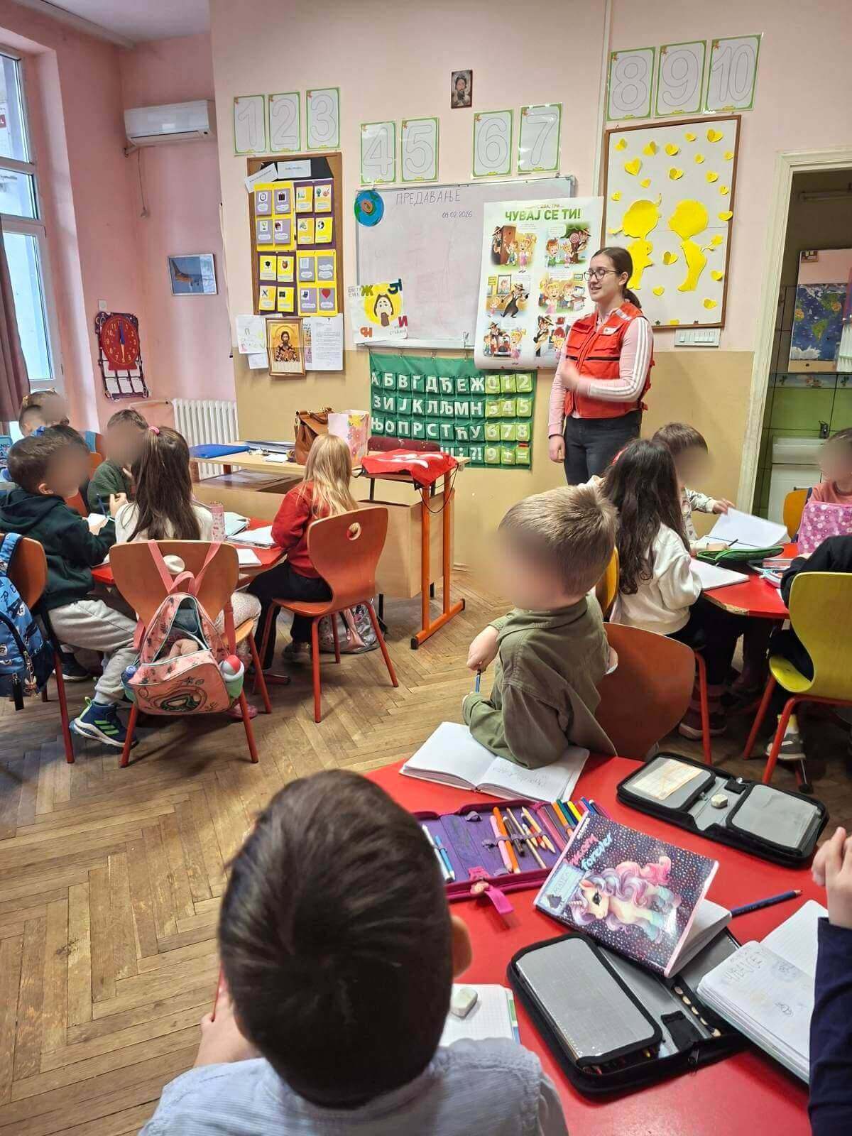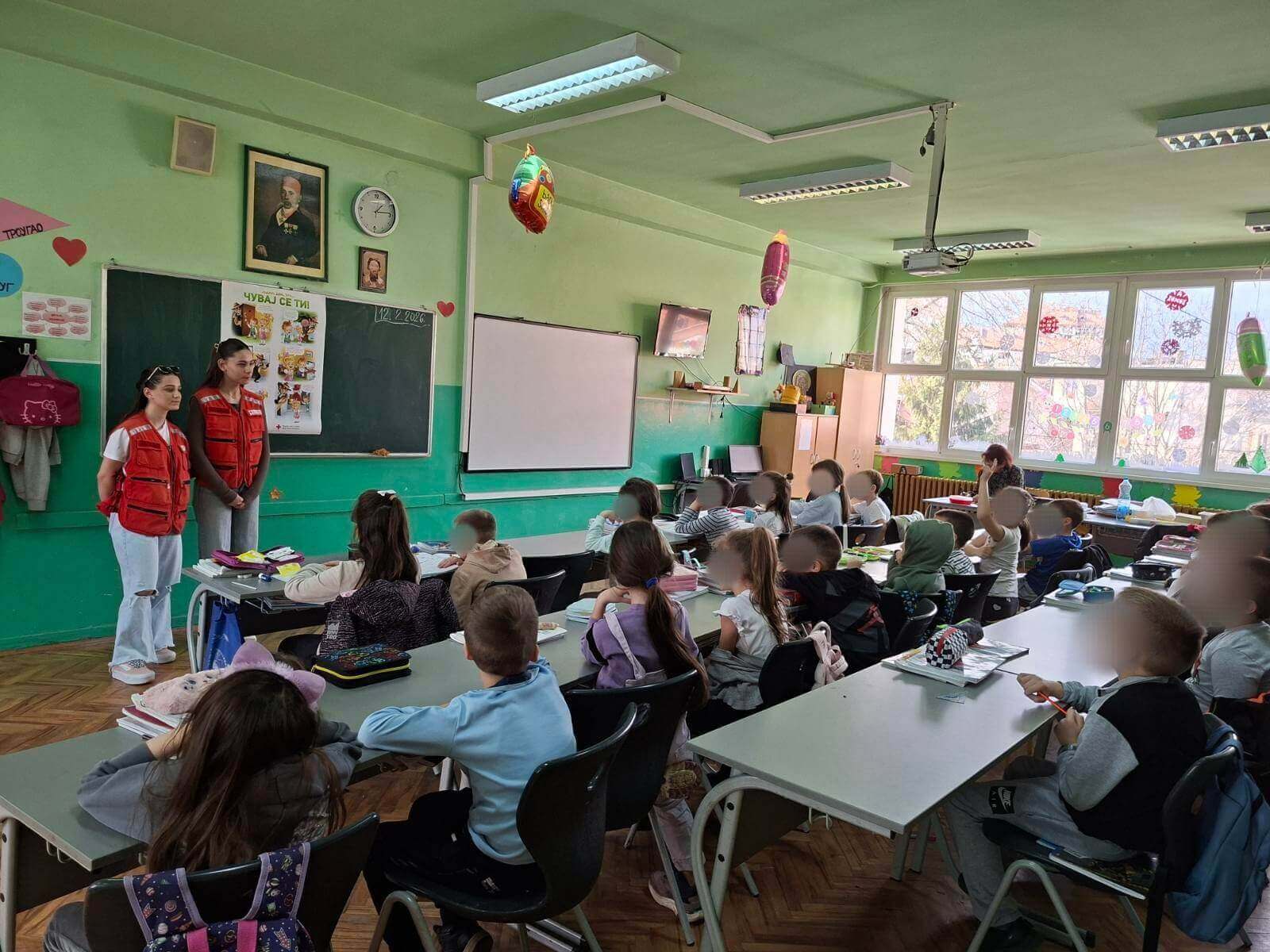 Црвени крст Ниш је ове недеље отпочео са реализацијом радионица у оквиру Програма превенције трговине људима у ОШ "Ратко Вукићевић". За три групе предшколаца и ученике шест одељења првог разреда одржане су радионице Дружење са Мишом и Машом. Реализатори радионица били су едукатори Теодора Митић, Љубица Стојковић, Хелена Првуловић, Петра Тричковић, Александар Ђурић и стручни сарадник Црвеног крста Ниш Александра Савић.