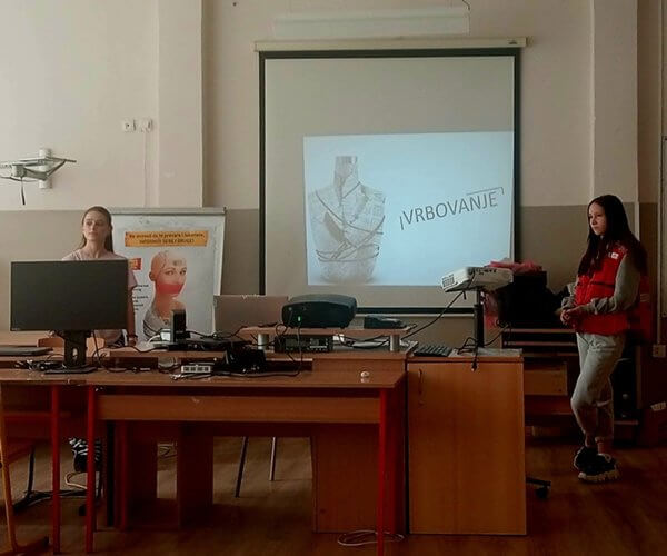 Ученици су кроз стандардизовану презентацију упознати са појмом трговине људима, фазама, начинима врбовања, облицима експлоатације, механизмима контроле жртве и мерама опреза. Радионицу су реализовали волонтери Црвеног крста Ниш Маја Вељковић, Хелена Првуловић и Александар Ђурић.