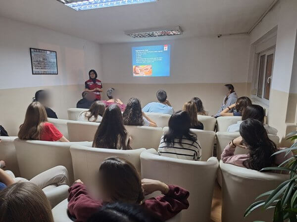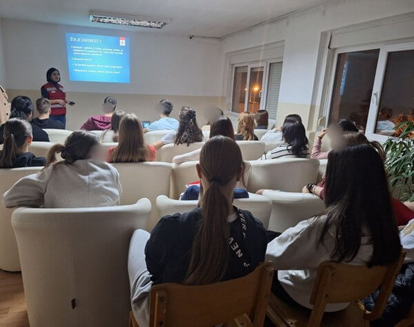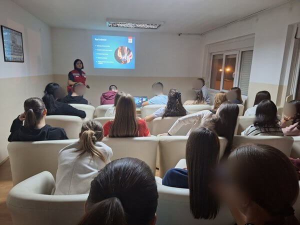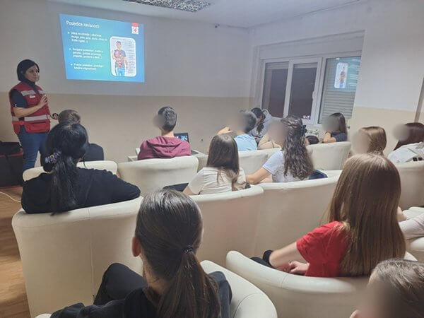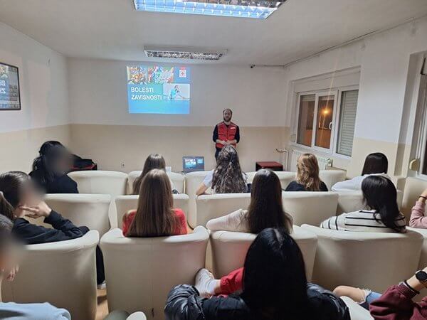 О факторима ризика, последицама, лечењу и стратегијама превенције говорили су стручни сарадник Црвеног крста Ниш Александра Савић и волонтер Александар Ђурић.